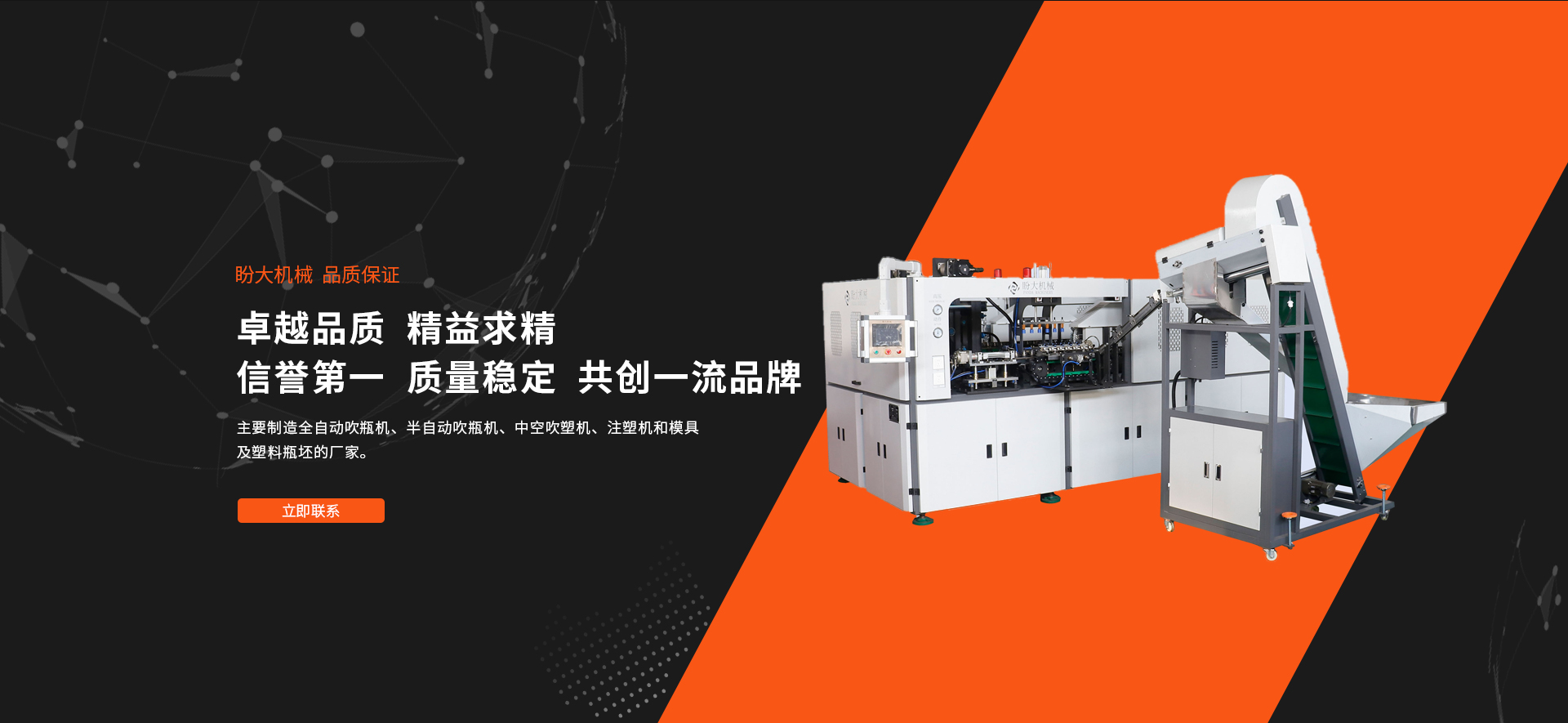 臺州盼大機械有限公司座落于東海之濱, 著名的“蜜桔之鄉(xiāng)”和“模具王國”—浙江黃巖。主要制造全自動吹瓶機、半自動吹瓶機、中空吹塑機、注塑機和模具及塑料瓶坯的廠家。本廠擁有多年的生產經驗,采用進口和國產的高質量生產設備和檢驗儀器。MT系列多功能吹瓶機是本廠生產和研發(fā)的一種操作簡單、成品率高、適用性廣、可靠性穩(wěn)定的吹瓶機。采用進口的先進氣動元件,設計以高效益,高精度,維修安全,集美觀耐用于一體。